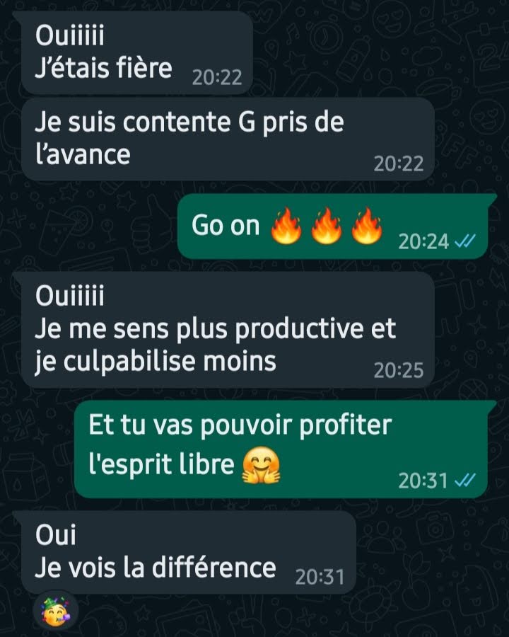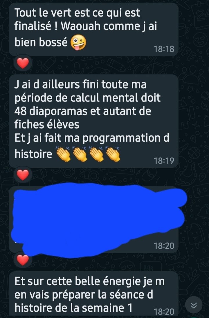 ✨Les résultats sont vraiment merveilleux, et de voir ces enseignantes retrouver du temps, de l'énergie, du bien-être et des relations de qualité avec leurs proches, ça me donne encore plus envie d'agir pour le bien-être de toutes !
