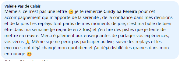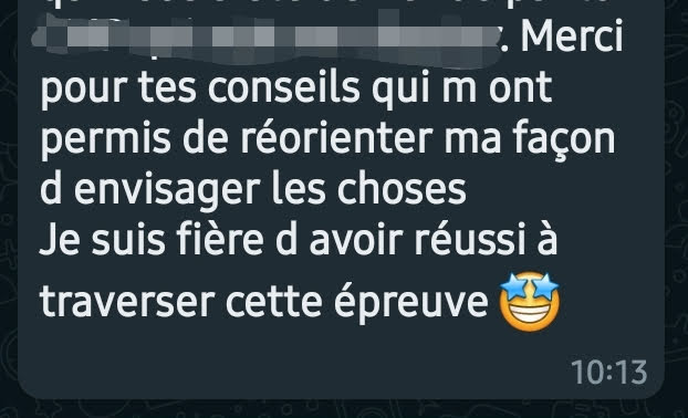 ✅ te diriger vers une vie personnelle et professionnelle de plus en plus épanouissante, au lieu de te laisser balader au gré du vent et des évènements, sans avoir de prise sur ce qui se passe (alors, oui, ça ne se fait pas en 1 jour, mais les résultats positifs sont très rapides à ressentir)